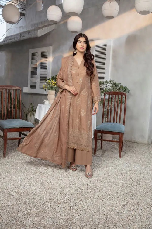 3 PIECE PEACH LEATHER EMBROIDERED (Unstitched) 3 PIECE PEACH LEATHER EMBROIDERED (Unstitched)